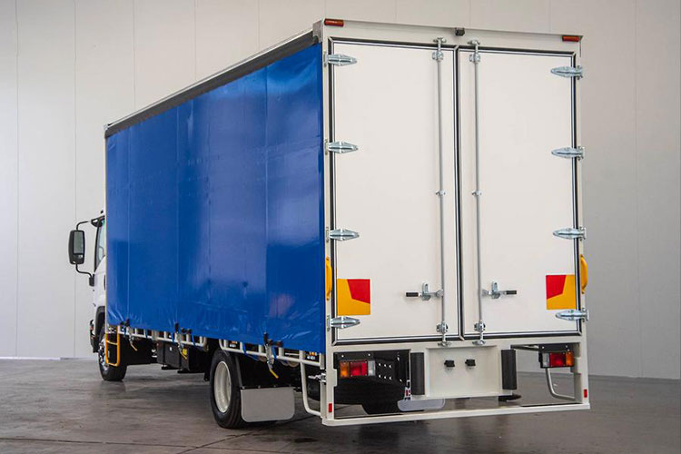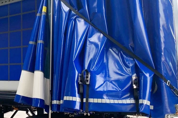 Les deux côtés du véhicule sont constitués de rideaux résistants aux intempéries, qui peuvent être écartés pour faciliter le chargement et le déchargement latéral. Ces rideaux sont fabriqués en polyester enduit de PVC, un tissu protégé contre les UV, la moisissure, le gel, l’électricité statique, les bactéries et ignifugé.