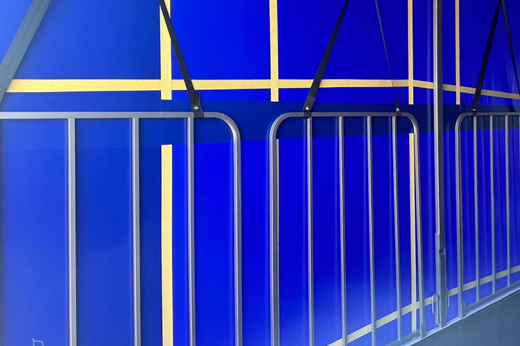 - Les côtés sont constitués de rideaux résistants aux intempéries, qui peuvent être ouverts pour faciliter le chargement et le déchargement latéraux.