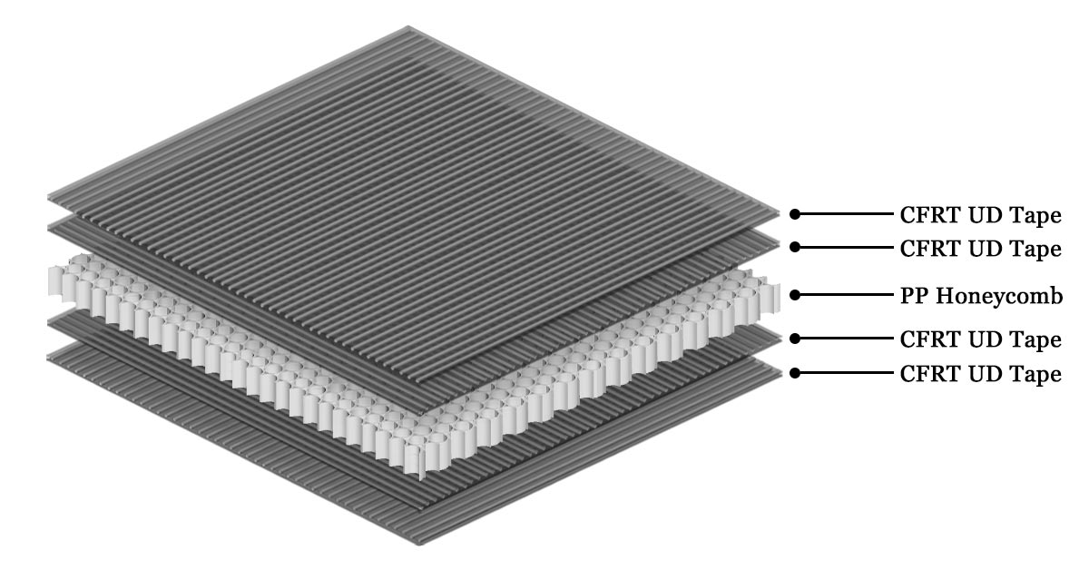 Thermoplastic honeycomb composite panels are sandwich panels with CFRT (continuous fiber reinforced thermoplastic) composite sheets on the surface. Since no glue is used during the processing, the bonding between the layers is tighter and the structure is more stable.