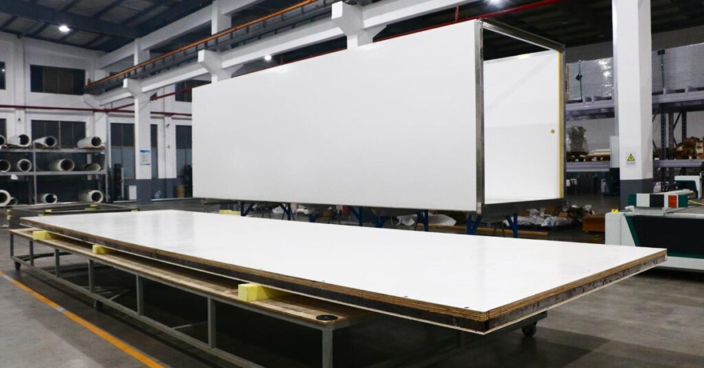 - Panneaux composites monoblocs : les panneaux en PRV adoptent généralement une technologie de moulage monobloc, avec une couche intermédiaire en mousse d’isolation thermique et une couche extérieure en plaque de PRV de qualité alimentaire résistante aux intempéries.