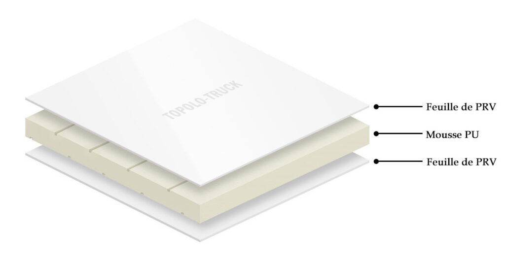 La surface en PRV est lisse, résistante à la saleté, aux UV et à la corrosion, ce qui facilite son nettoyage et son entretien. La mousse de polyuréthane elle-même est également peu propice à la prolifération bactérienne, offrant ainsi un environnement plus hygiénique pour les marchandises transportées.